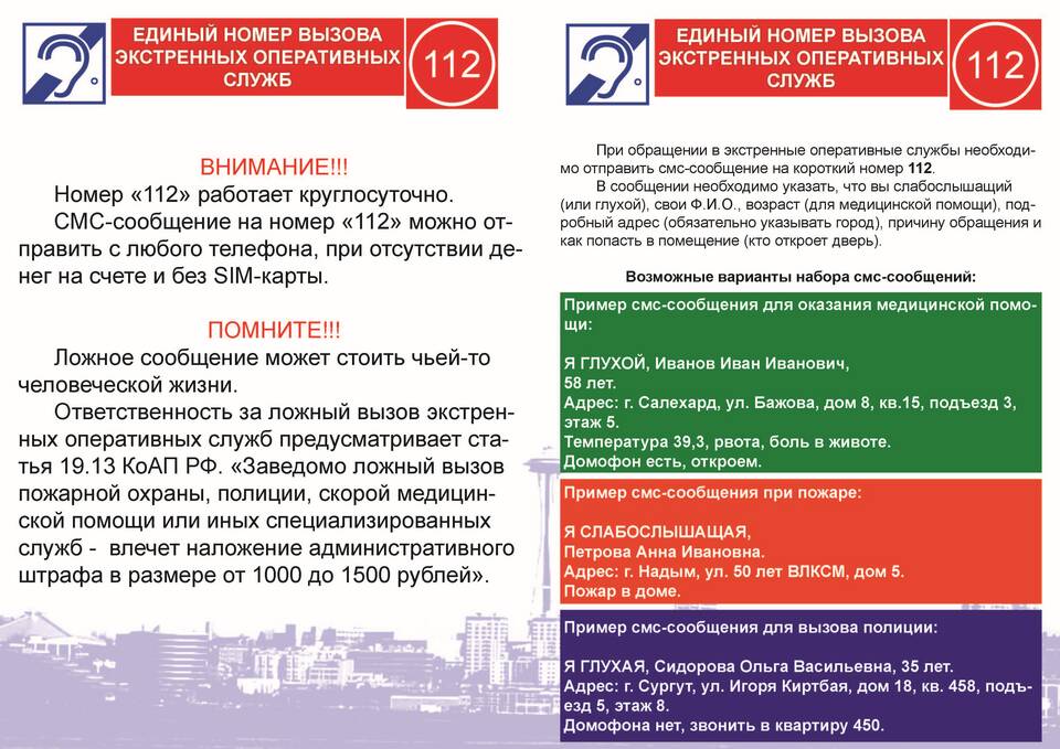 - Для глухих и слабослышащих доступен SMS-сервис 112